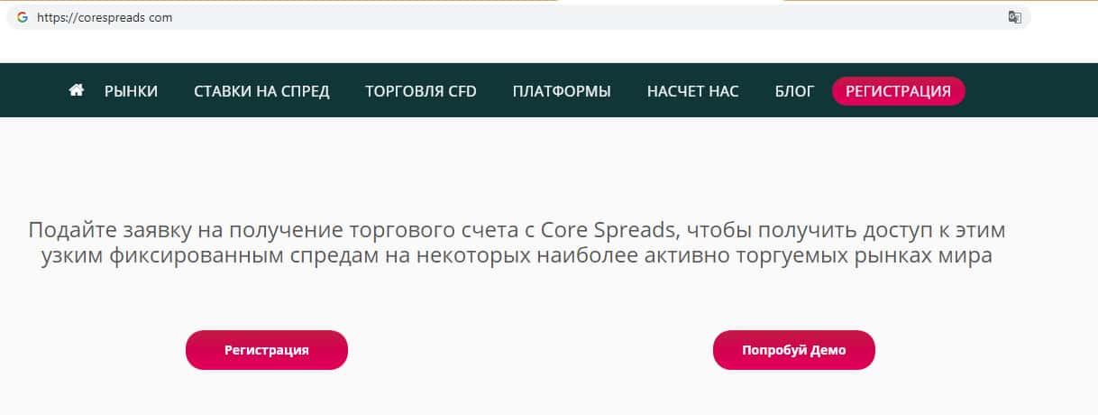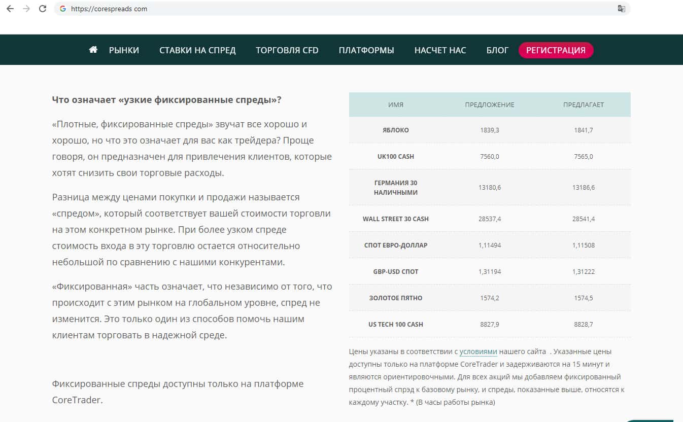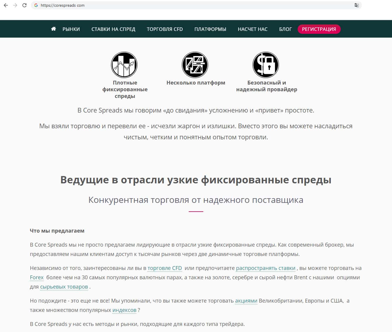 Обзор главного интернет ресурса компании жуликов Core Spreads