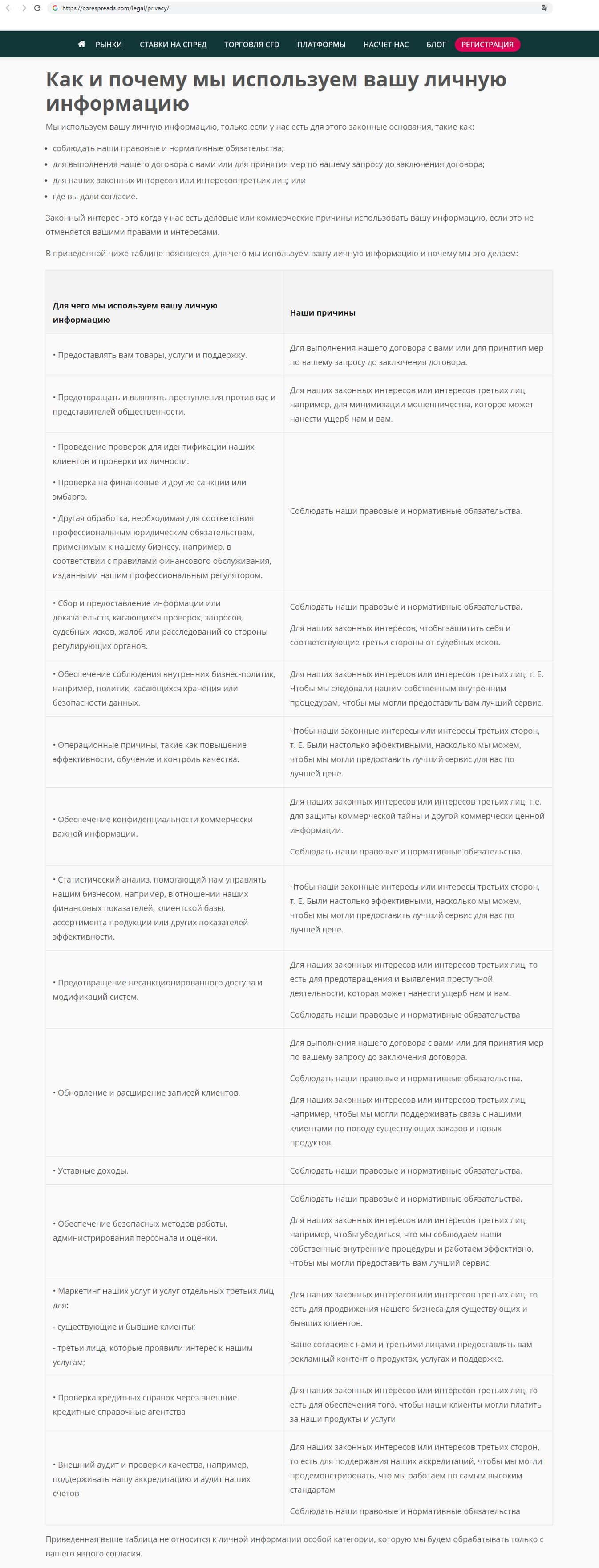 Разводилы Core Spreads предоставили свою нарисованную политику конфиденциальности. Но нет смысла в неё вникать, так как компания из за отсутствия лицензии не является законной, и мошенники могут писать в своей документации всё что угодно, так как они могут изменять условия в любое время.