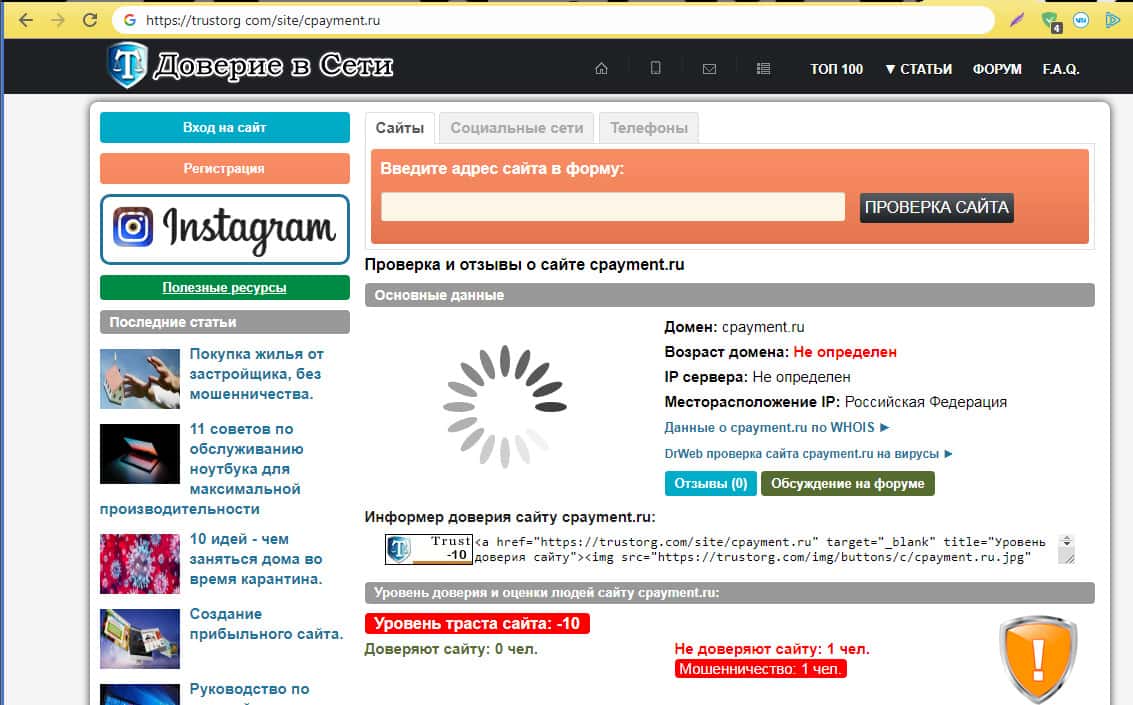 trustorg com - проверка сайтов на мошенничество и уровень недоверия
