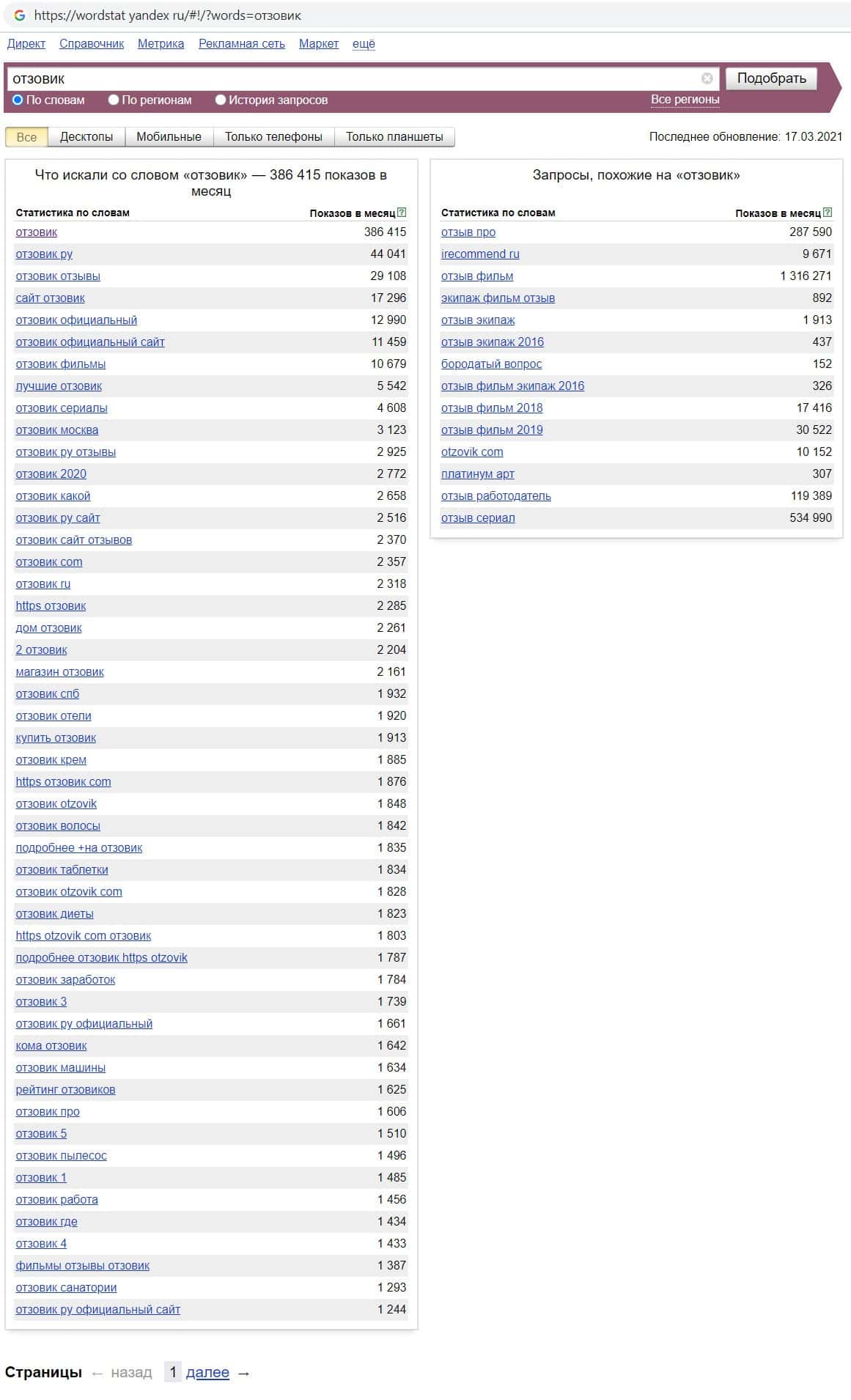 wordstat yandex ru - количество брендовых запросов в Яндексе