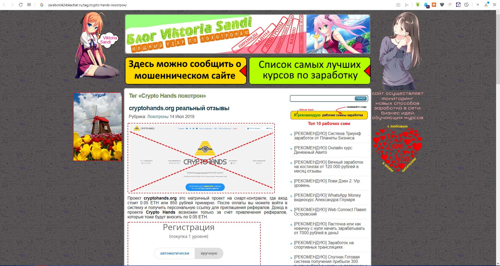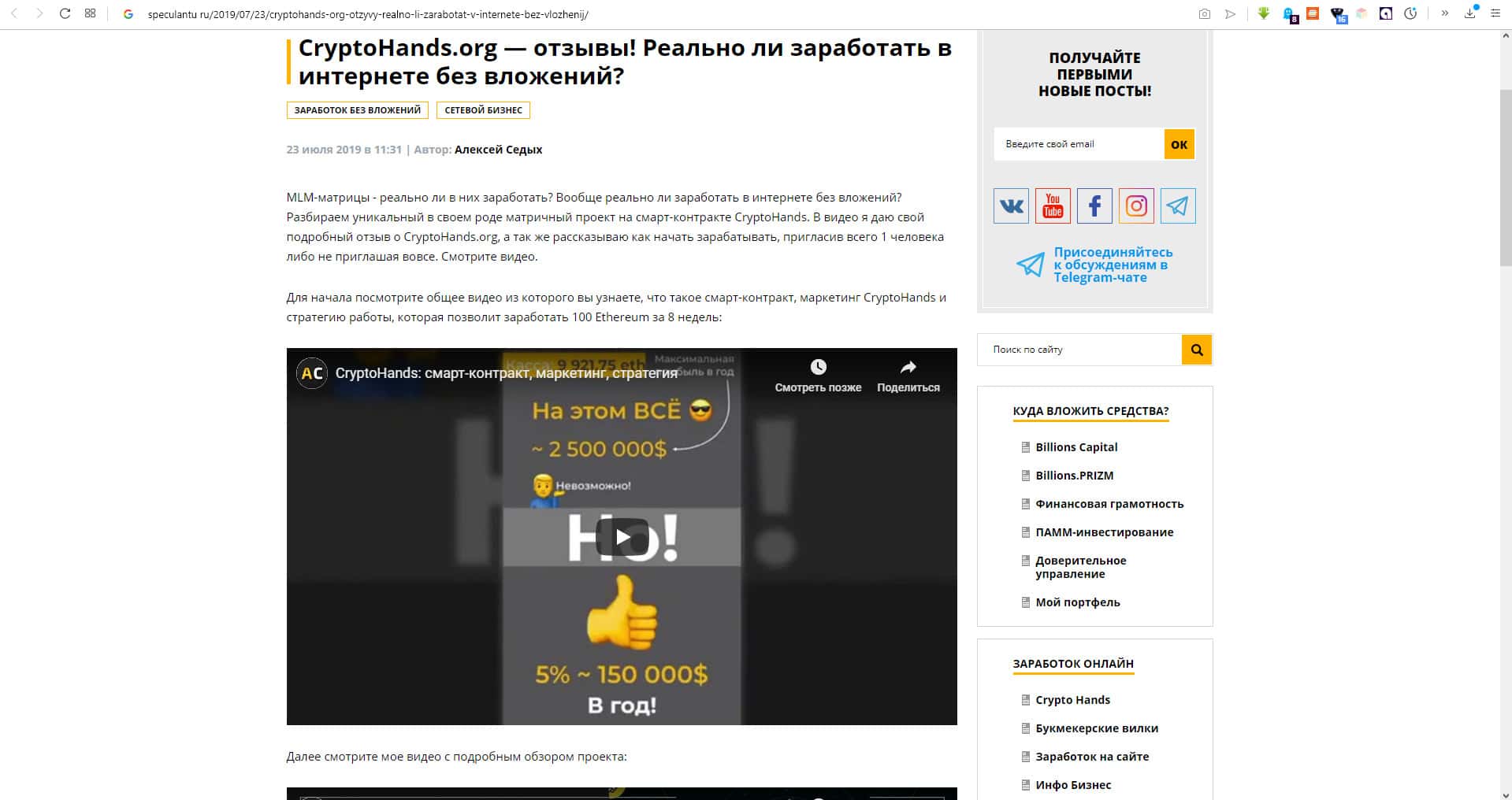 - Статья о скам-проекте CryptoHands на авторитетном сайте antiobman