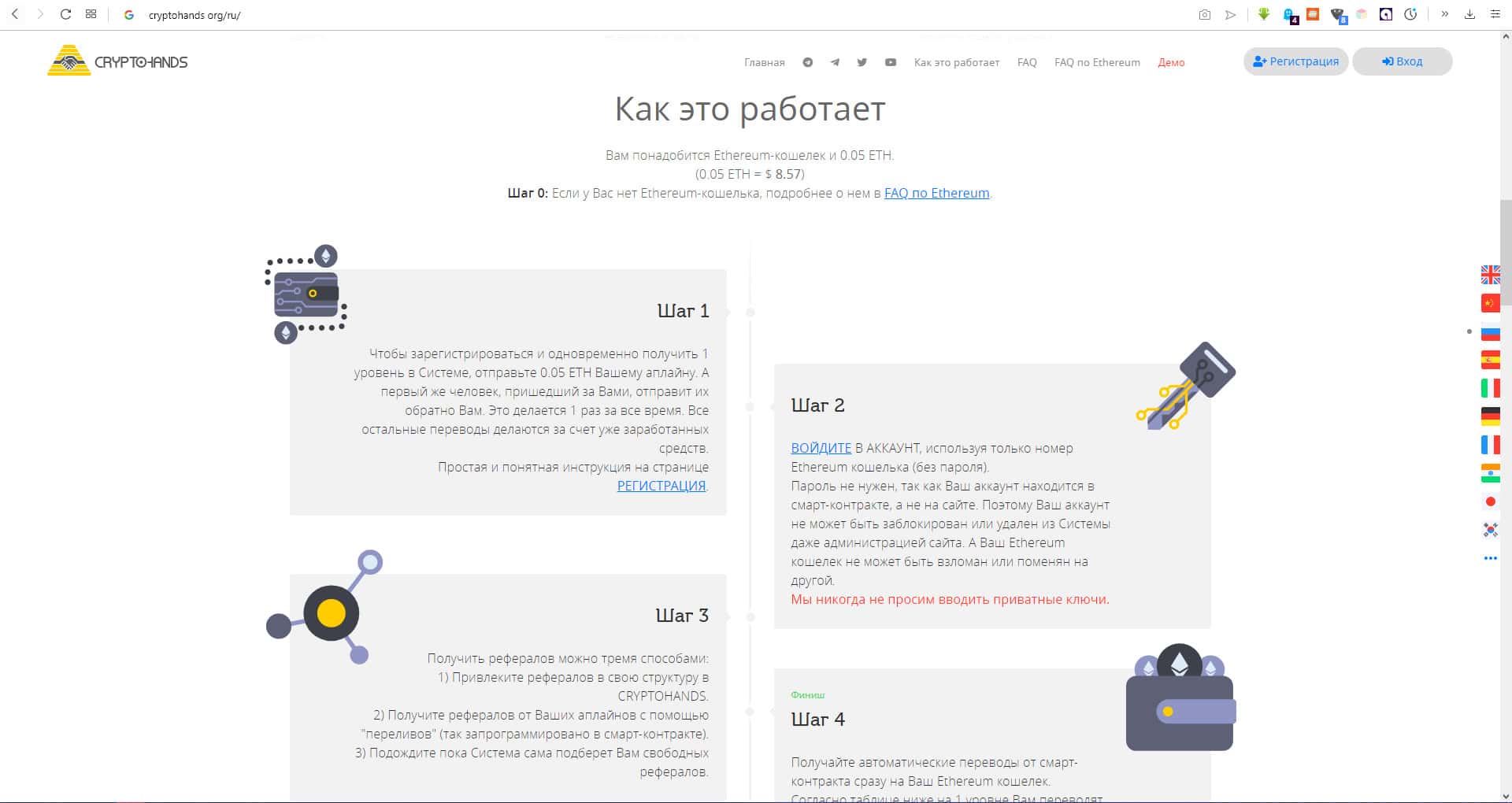 На сайте нам рассказывают о всяких шагах, которые нам надо сделать, чтобы быть "в плюсе", но мы знаем, что мы не окажемся в плюсе, а даже наоборот, только в минусе. Это можно полноправно назвать алгоритмом для потери своих накопленных денег, благодаря конторе КриптоХэндс.