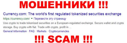 Карренси Ком - очередные мошенники сети интернет, которые занимаются наглым разводом наивных пользователей сети под предлогом торговли форекс и CFD криптовалютой в ходе которой шулера Currency Com оперативно сливают наивным пользователям счет. В связи с этим иметь дело с лохотроном Карренси Ком определенно не рекомендуем !!!
