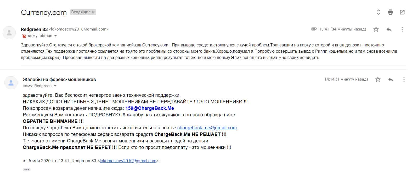 - Очередная жалоба на аферистов Currency Com от пользователя всемирной сети
