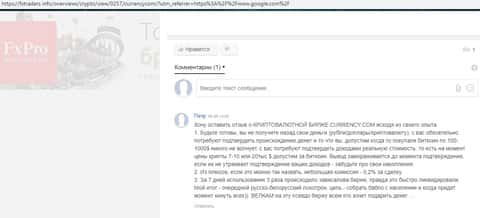 Жалоба на криптобиржу Карренси Ком от клиента, утратившего несколько тысяч рублей