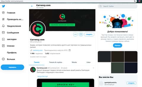 Имеется у жуликов Currency Com и страница в социальной сети Твиттер, на которую аферисты Карренси Ком накрутили около тысячи подписчиков, о чем свидетельствует полное отсутствие активности подписчиков на аккаунте мошенников. На изображении ниже, вы можете наглядно увидеть внешний вид страницы лохотрона Currency Com в социальной сети Twitter.