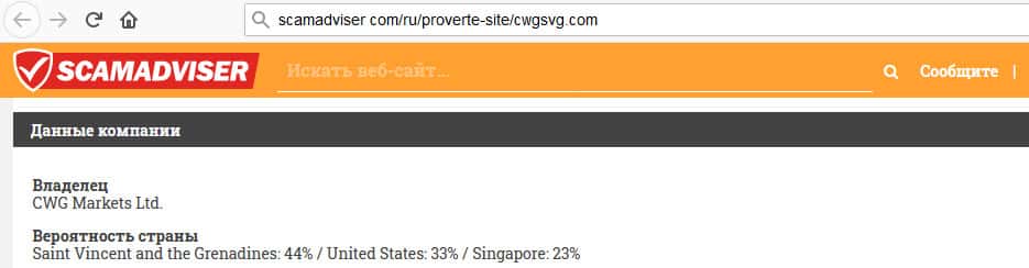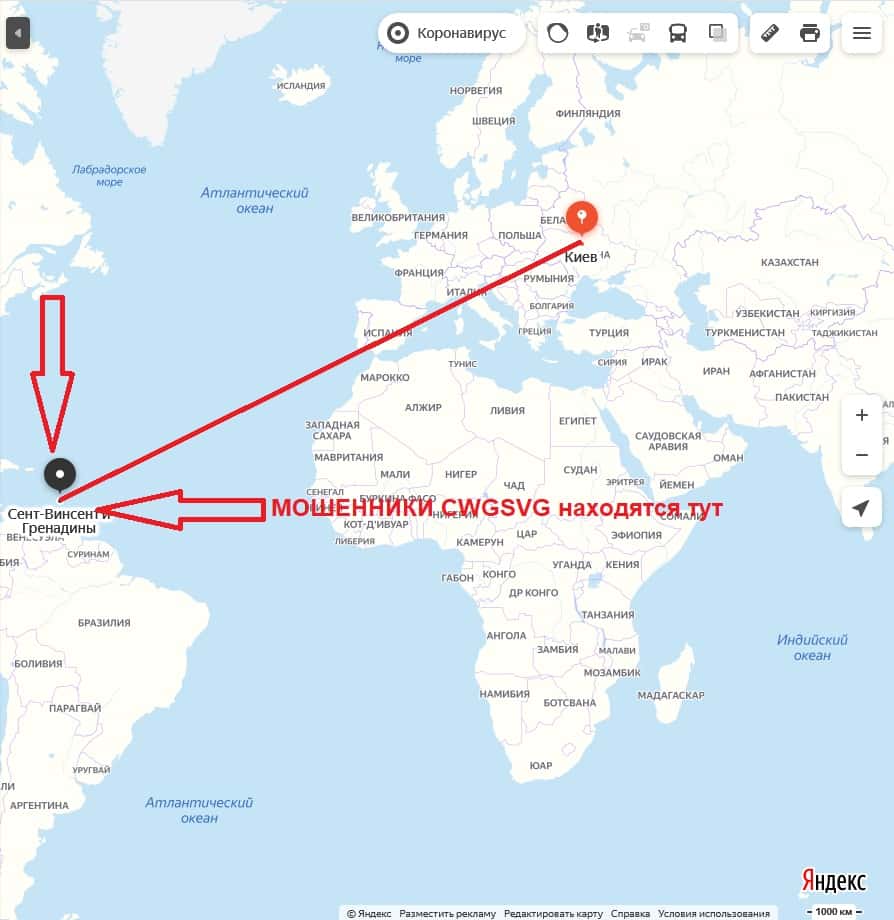 Первчный анализ показывает, что аферисты CWGSVG и правда находятся на Сент Винсент и Гренадинах