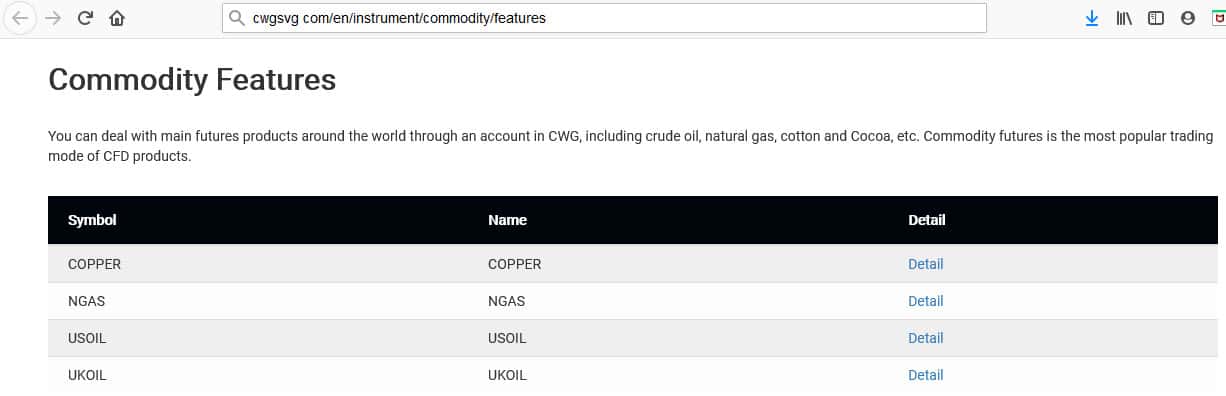 - Еще один инструмент торговли, предлагаемый жуликами CWGSVG Com - это торговля фьючерсами