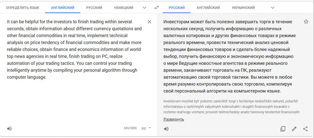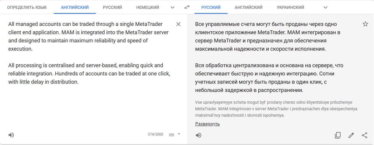 Переведенное описание платформы МАМ на сайте translate.google com.
