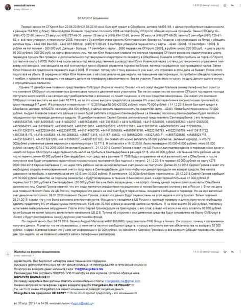 Сама ситуация ПОДРОБНО описана пострадавшим от рук мошенников Си Эф Икс Поинт, жалоба приведена ниже.