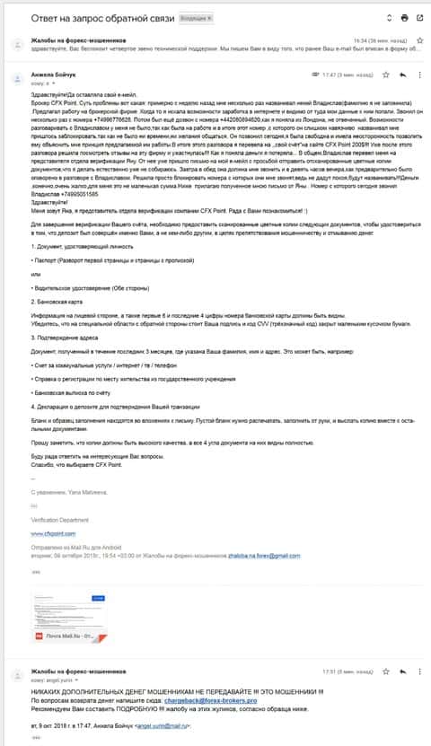 - Развод клиентки на деньги в исполнении аферистов CFX Point