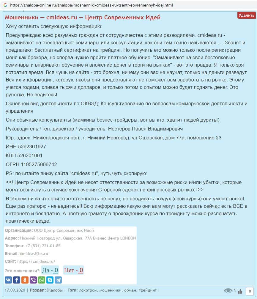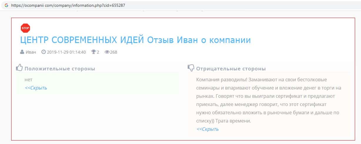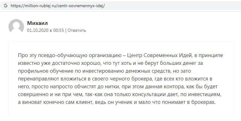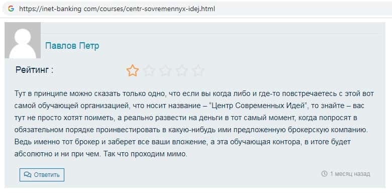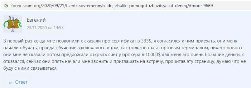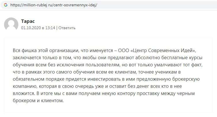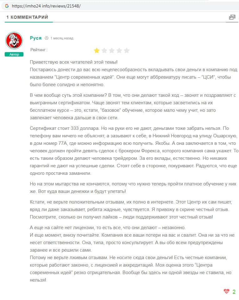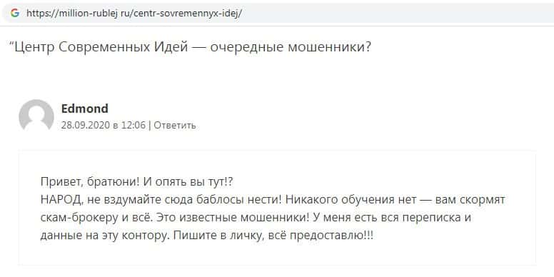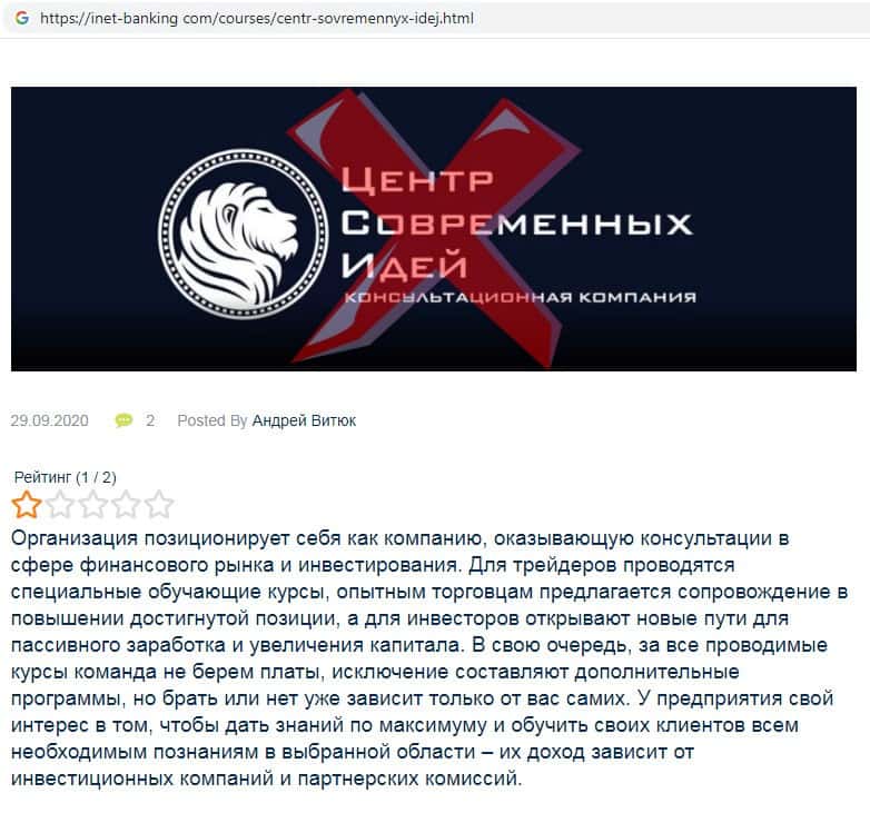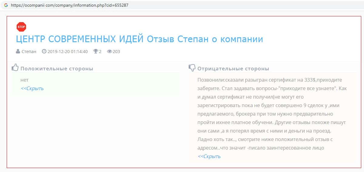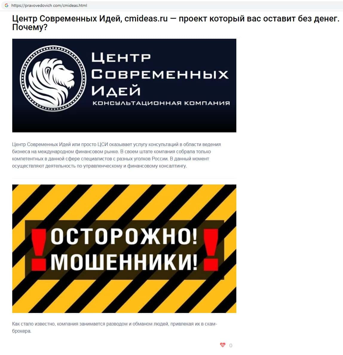 Центр Современных Идей - обзоры шулеров на других интернет-порталах