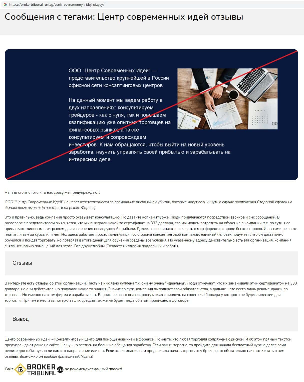 Обманщики Центр Современных Идей действуют сообща со скам-брокерами