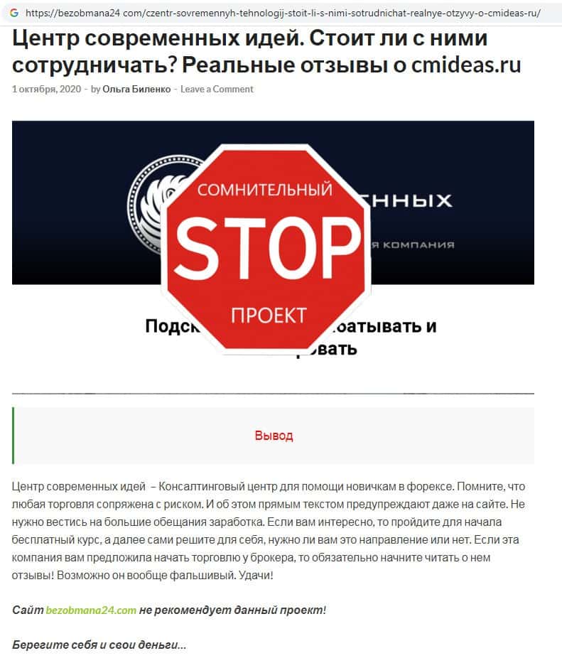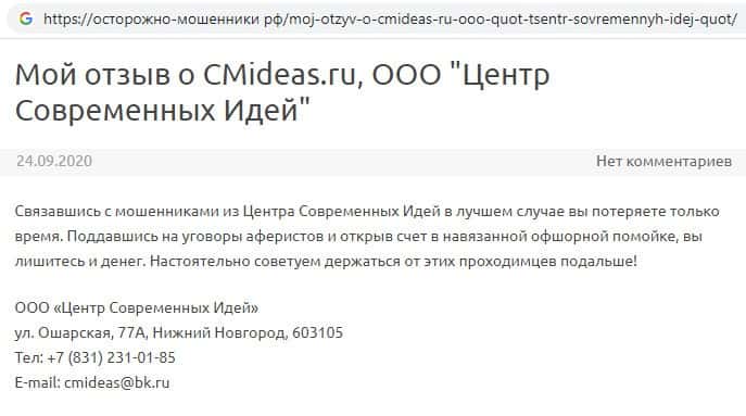 - Отзывы о скам-организации CMIdeas, ныне присутствующие в интернет-сети