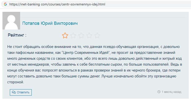 Не верьте лживым положительным пользовательским отзывам Центр Современных Идей, поскольку это вранье и фейк, все хвалебные комментарии куплены.