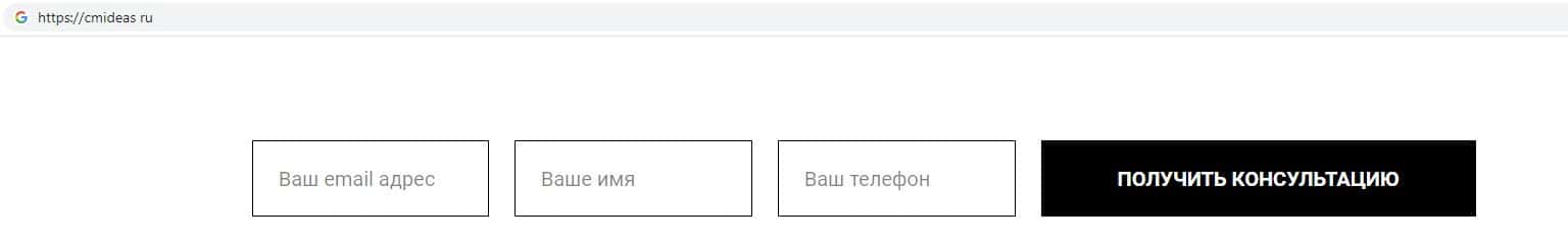 Аферисты CMIdeas предлагают пользователям заполнить бланк обратной связи, где просят указать свое имя, адрес электронной почты и номер контактного телефона.