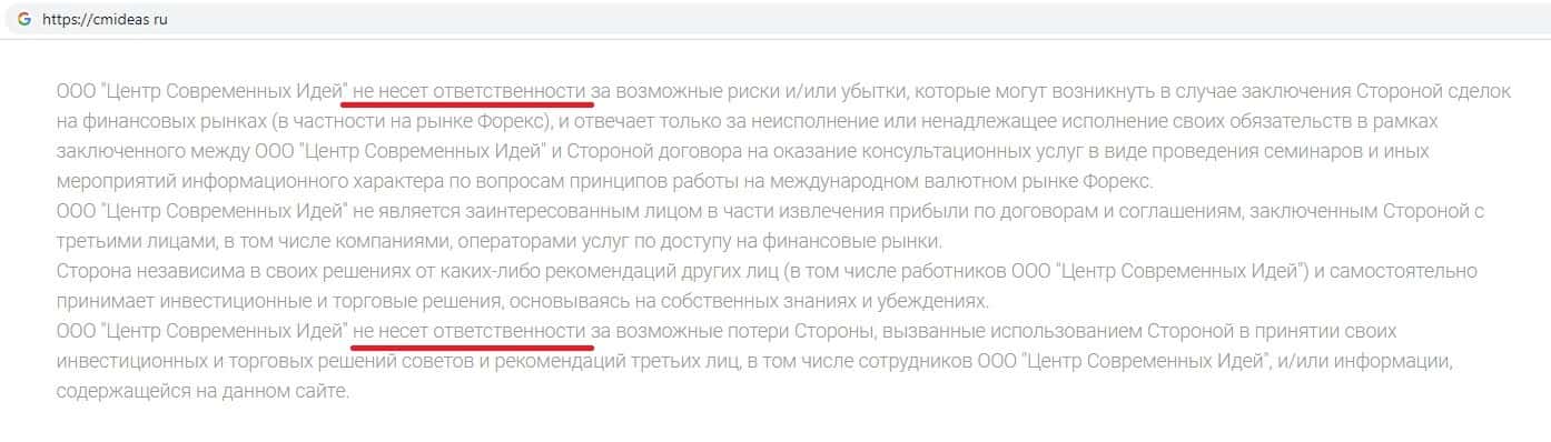 Аферисты Центр Современных Идей не дают никаких гарантий и не несут никакой ответственности за предоставленную ими якобы обучающую информацию.
