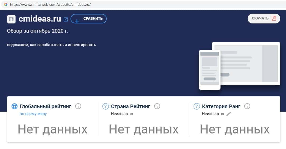 При проверке источников бренда по странам компании CMIdeas на сайте similarweb com, информация отсутствует, что является признаком фальшивого интернет-лохотрона.