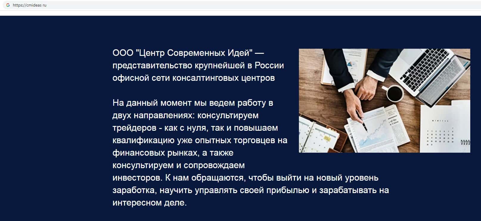 Сайт скам-организации Центр Современных Идей рассчитан на новичков, у которых нет опыта в торговле на международном финансовом рынке, верить аферистам нельзя !!!
