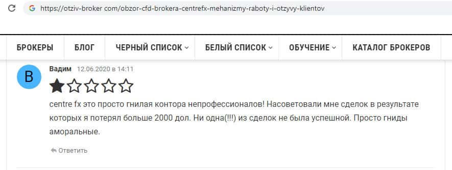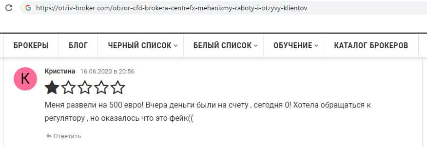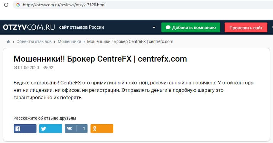 otzyvcom ru - сайт с информацией о махинаторах CentreFX