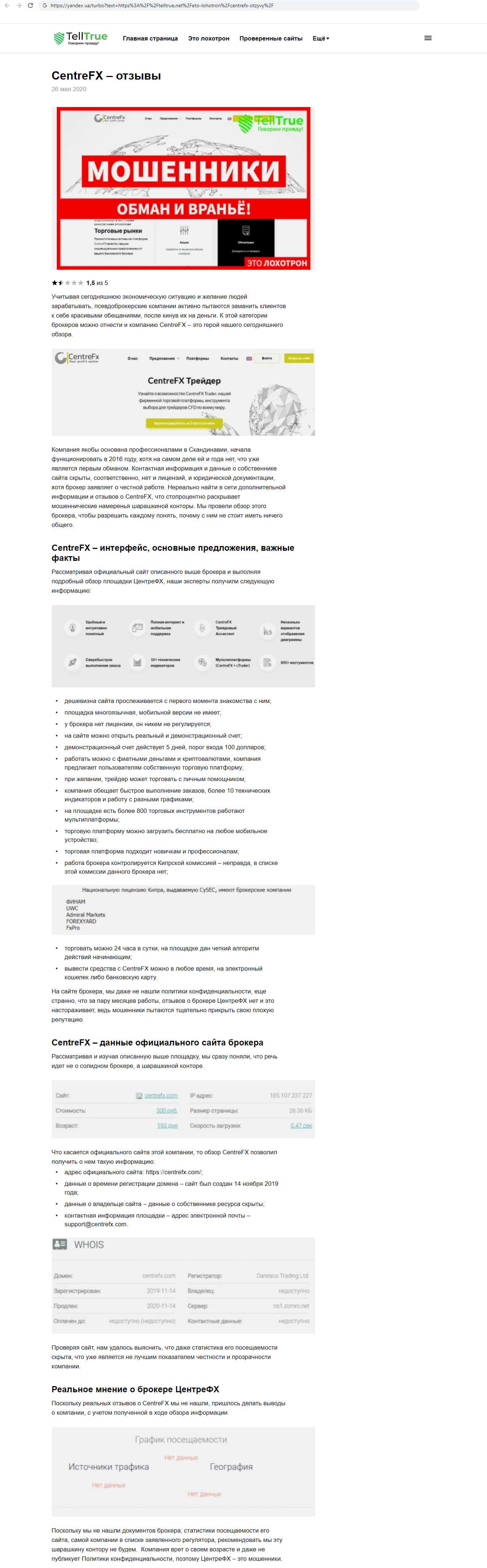 Мнение сайта telltrue net о конторе псевдоброкера CentreFX