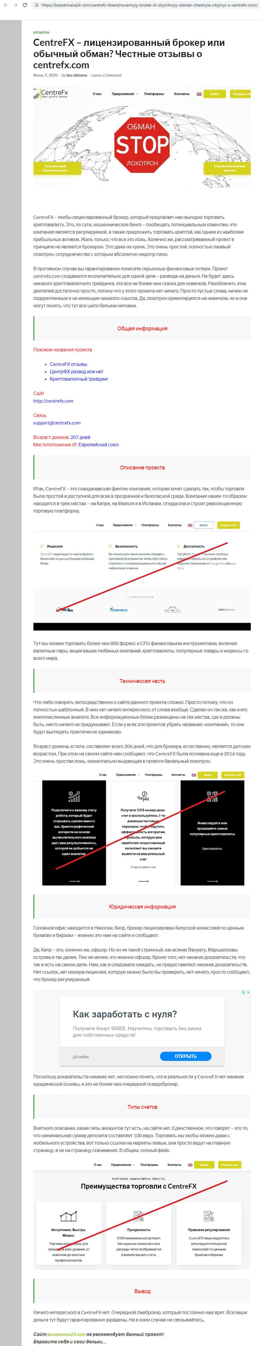 bezobmana24 com - разоблачительная статья о кидалах CentreFX