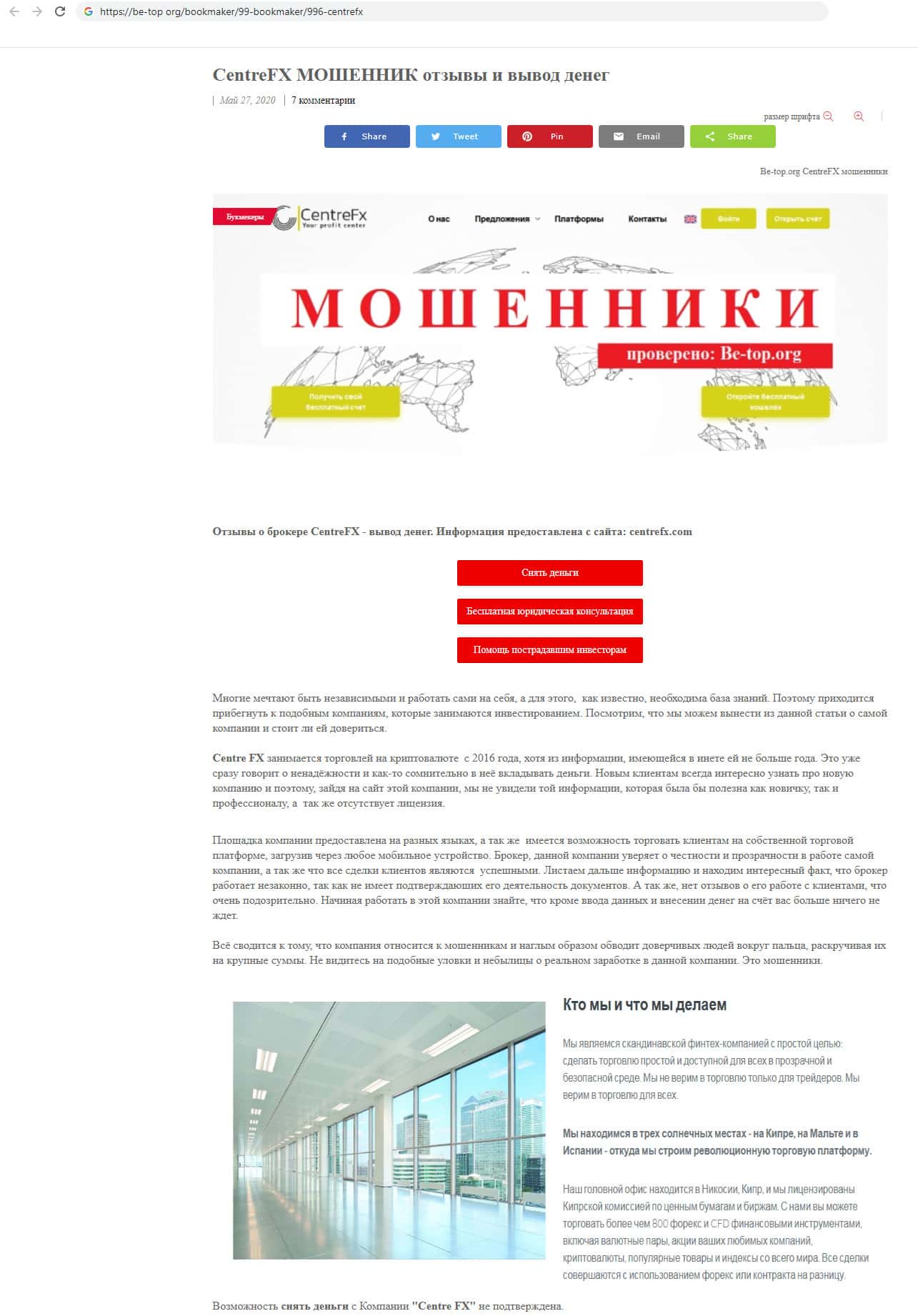 Сайт be-top org высказался по поводу конторы аферистов Центре ФХ