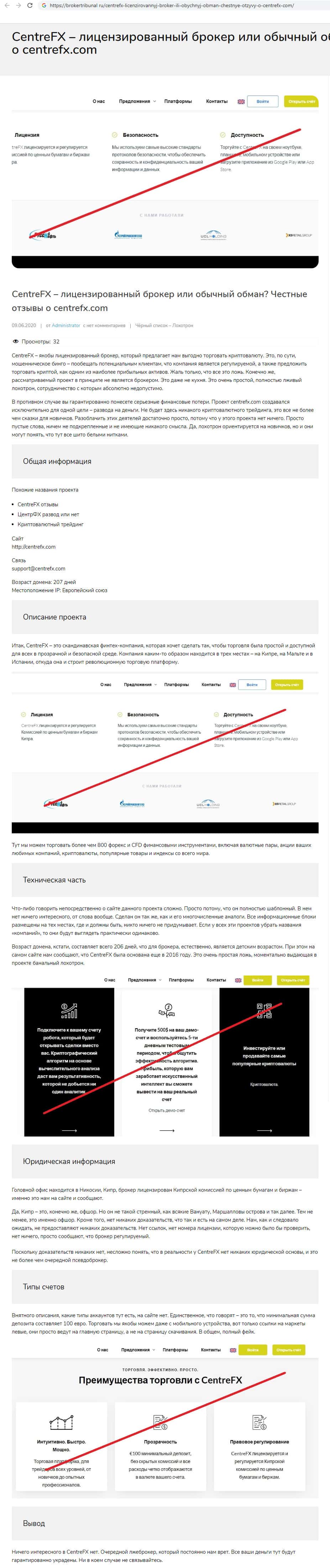 - Разоблачительная статья о мошенническом проекте CentreFX