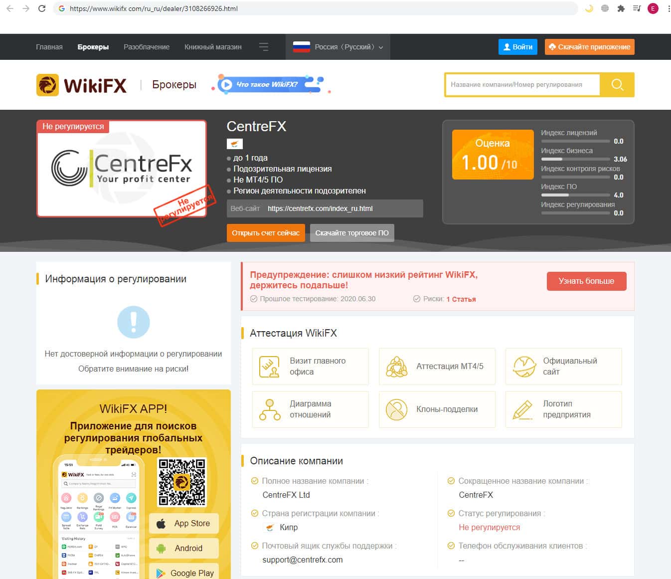 - Проверка компании жуликов CentreFX сайтом wikifx com