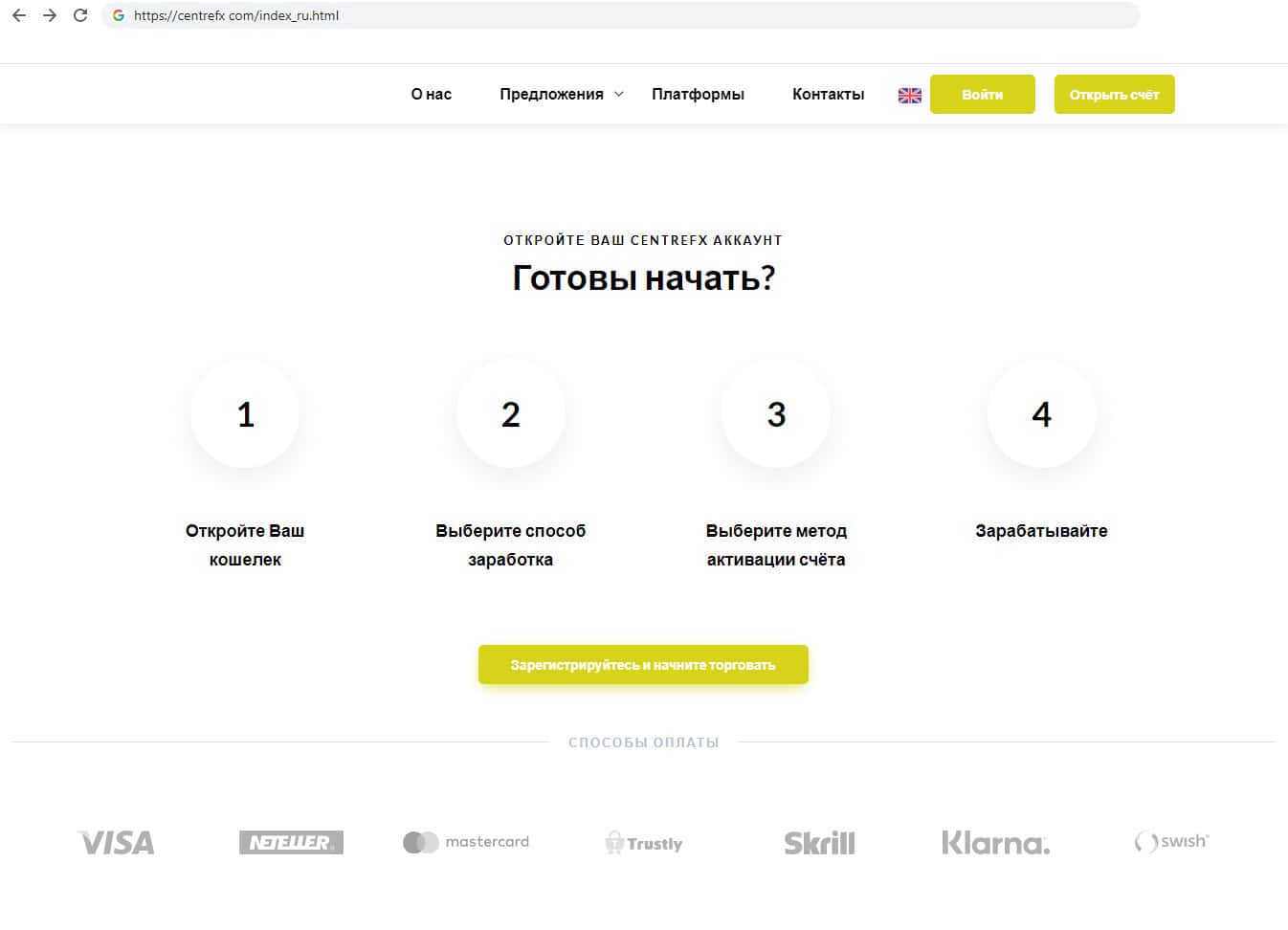 Обзор главного интернет ресурса компании махинаторов CentreFX