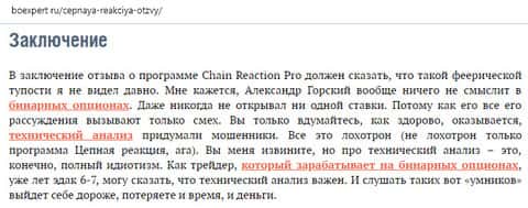 Мошенники Chain-Reaction Pro также вошли в обзор еще одного портала, к которому прислушиваются многие интернет-пользователи. В своем выводе они описывают, что Чаин-Риекшин Про это опасный и даже преступный ресурс, последствия сотрудничества с которым могут быть весьма плачевными.