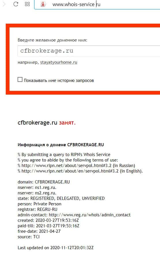 - Кому принадлежит доменное имя сайта cfbrokerage ru?