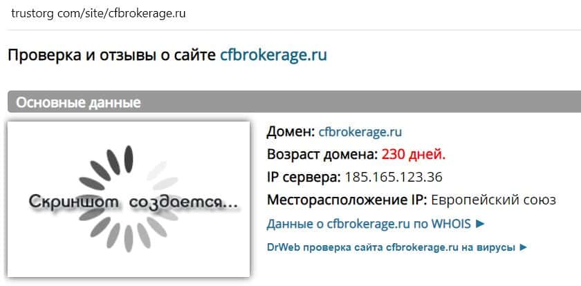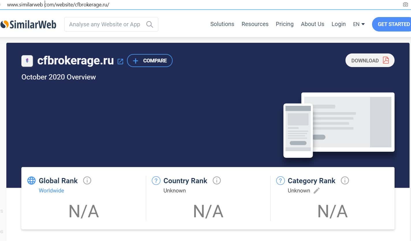 По данным сервиса Симиларвеб, сайт конторы cfbrokerage ru был создан совсем недавно, то есть это стопроцентный лохотрон, а не реальная компания.