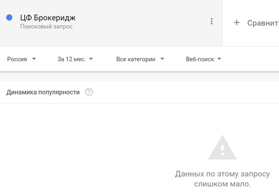 Посмотрим, сколько раз люди искали название бренда "ЦФ Брокеридж" на русском языке с пробелами. Незначительное количество раз.