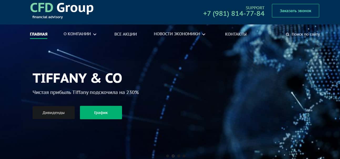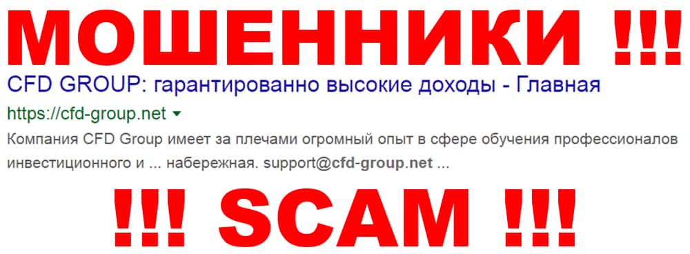 ЦФД Групп - очередные мошенники сети интернет, которые занимаются наглым разводом наивных пользователей сети интернет под довольно банальным и типичным предлогом торговли форекс, в ходе которой аферисты CFD Group кидают клиентуру на деньги. В связи с этим иметь дело с лохотроном ЦФД Групп определенно не рекомендуем !!!