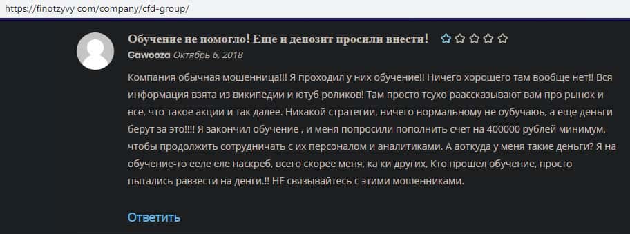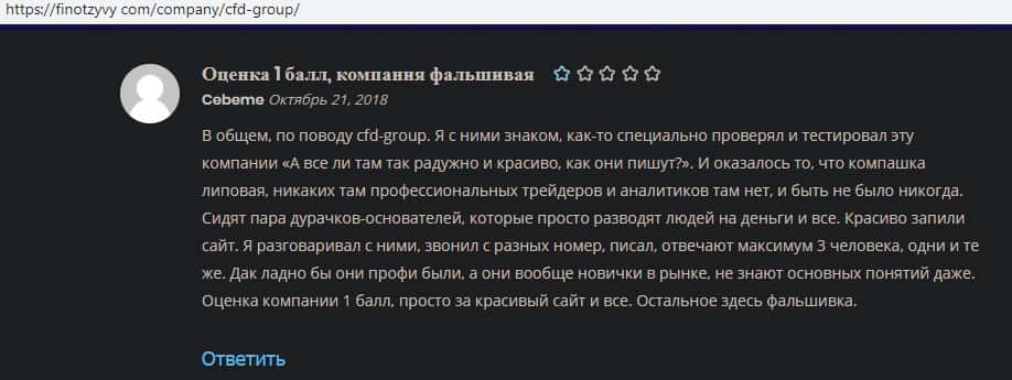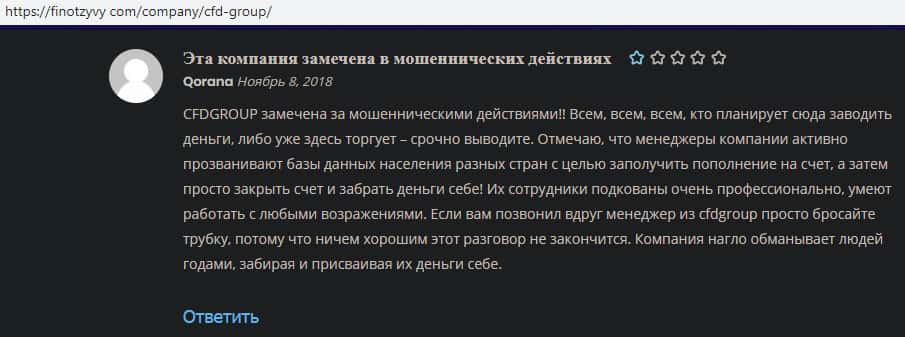 Очередной клиент не рекомендует иметь дело с лохотроном CFD Group