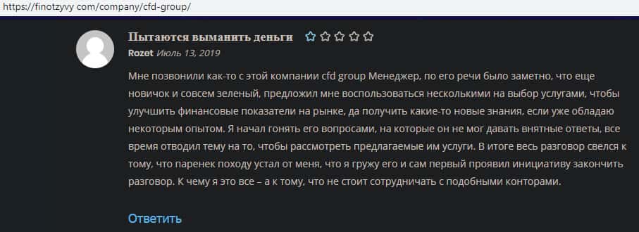 Отзыв о лохотроне ЦФД Групп с веб-площадки finotzyvy com