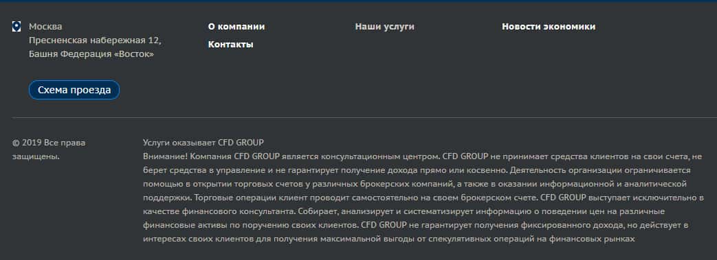 Обзор на внешний вид подвального сайта мошенников CFD Group
