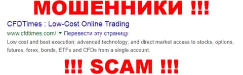 ЦФД Таймс - очередной лохотрон сети интернет, который занимается разводом наивных пользователей сети интернет под предлогом торговли форекс и CFD, в ходе которой жулики CFDTimes сливают жертвам счет, после чего сваливают восвояси. В связи этим связываться с аферистами ЦФД Таймс определенно не рекомендуем !!!