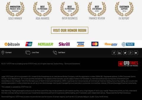 Завершается сайт у жуликов CFDTimes типичной фишкой мошенников, а именно наградами, о которых ничего не известно и их наличие аферисты ЦФД Таймс никак подтвердить не могут. Особенно удивляет тот факт, что награды выданы мошенникам CFDTimes еще до начала работы их подвального сайта, соответственно это еще одно доказательство их отсутствия.