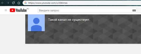 Ну а с социальной сетью YouTube все еще намного проще, ведь при переходе на нее по ссылке с сайта жуликов CFDTimes мы столкнемся с оповещением о том, что данный канал попросту не существует. Соответственно либо аферисты ЦФД Таймс схалтурили, либо канал жуликов CFDTimes был давно удален. Ниже вы можете увидеть результат перехода по ссылку мошенников ЦФД Таймс.