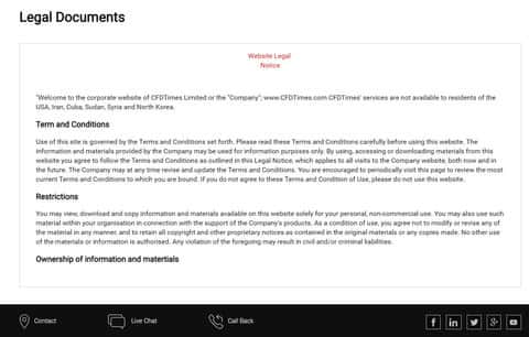 Условия сотрудничества и политика конфиденциальности отсутствуют жуликов CFDTimes