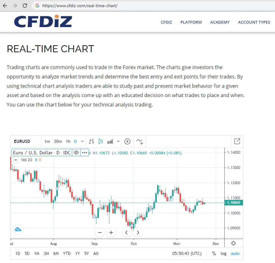 - Графики "реального" времени для введения в заблуждение трейдера на площадке CFDIZ
