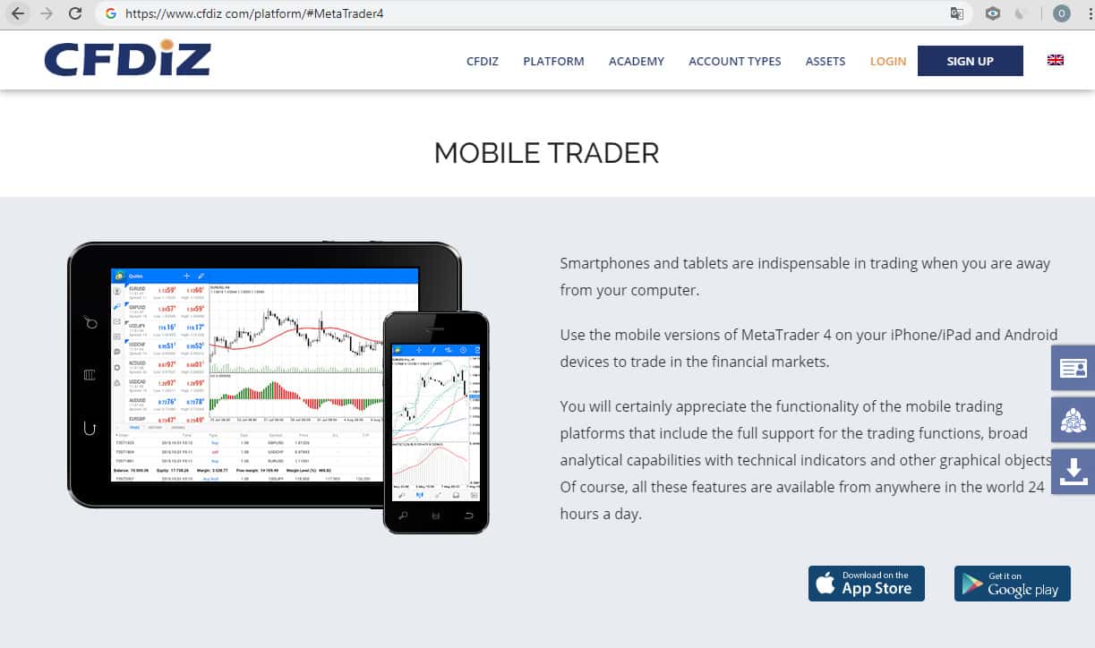 - Мобильность торговой площадки CFDIZ для спешащих расстаться с деньгами трейдеров