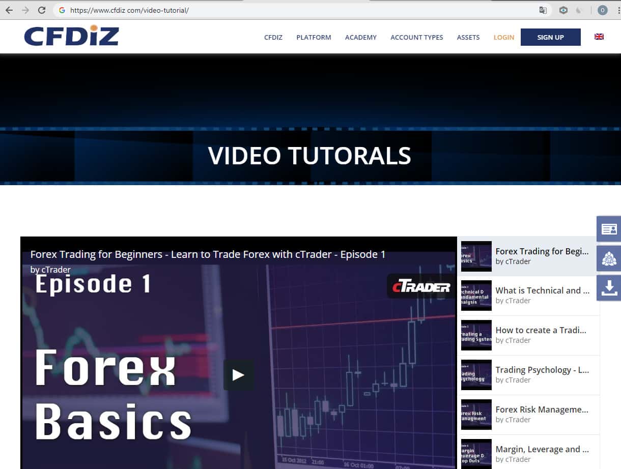 Следующий раздел содержит содержит видео руководство по торговле на финансовых рынках форекс, его ньюансах, преимуществах и недостатках. Руководство состоит из 19 частей, каждая в среднем по 15 минут. Но примечательно другое, сайт англо и испаноязычный, а субтитры в видеороликах русские. Вот Вам ответ, на какую аудиторию нацелен портал ЦФДИЗ.