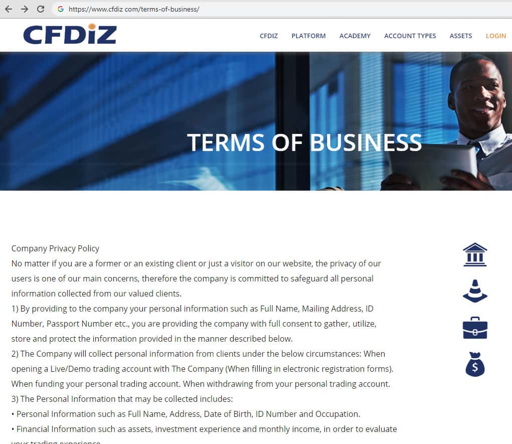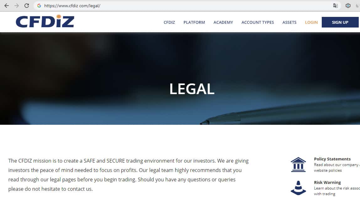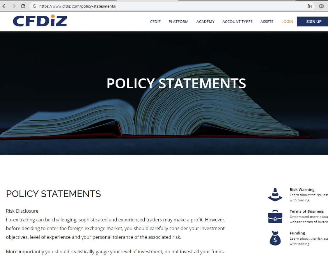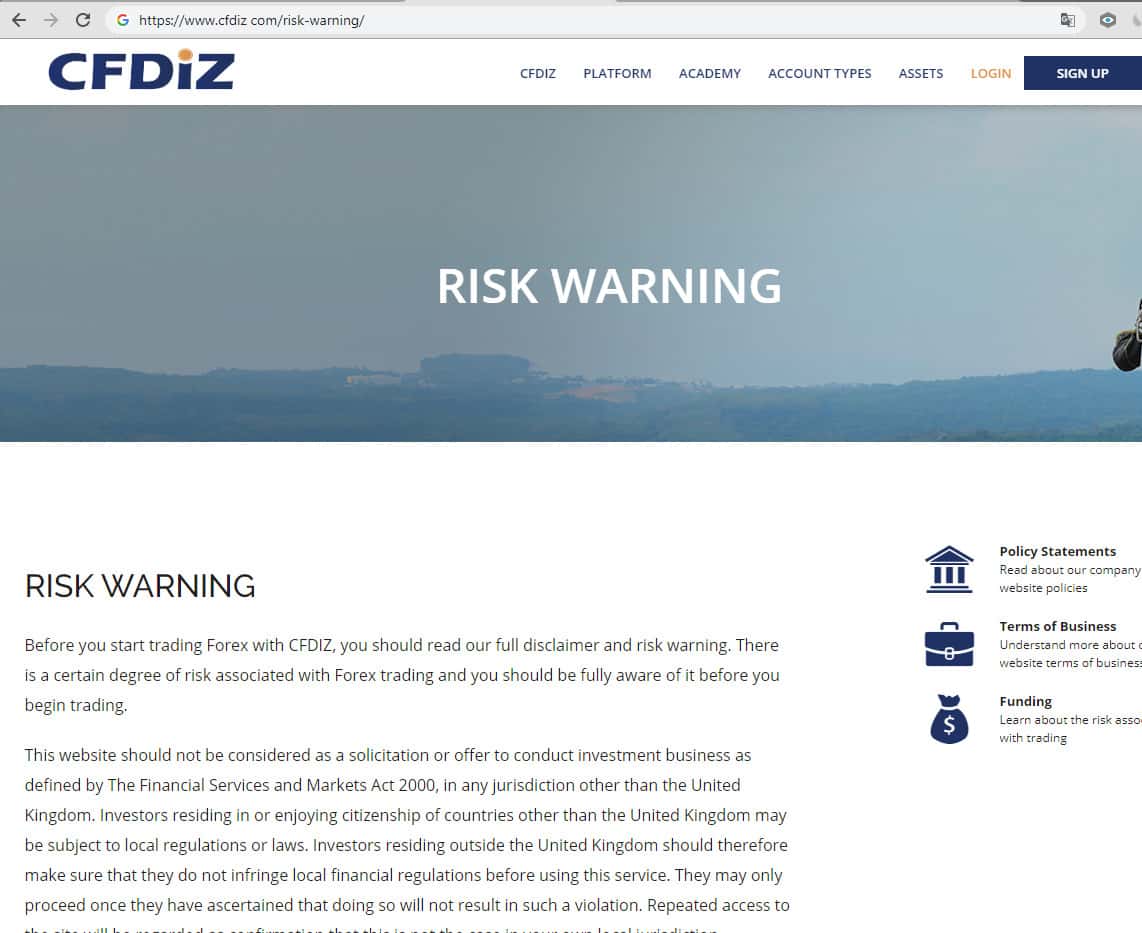 - Расширенная информация о рисках трейдера, решившего связать свою судьбу с брокером CFDIZ