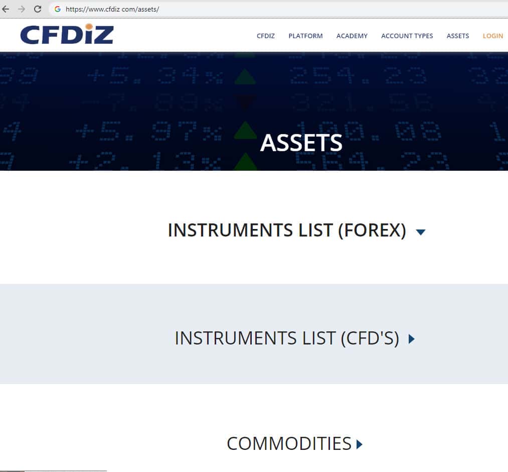 - Торговые активы, предлагаемые на торговой площадке CFDIZ