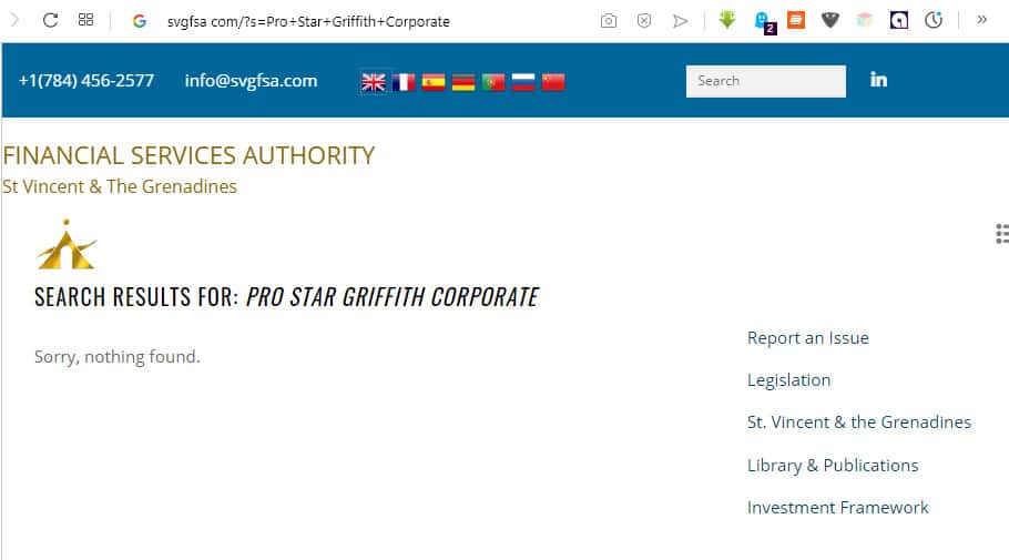 - Отсутствие лицензирования у CFDIZ и Pro Star Griffith Corporate в Сент-Винсент и Гринандины