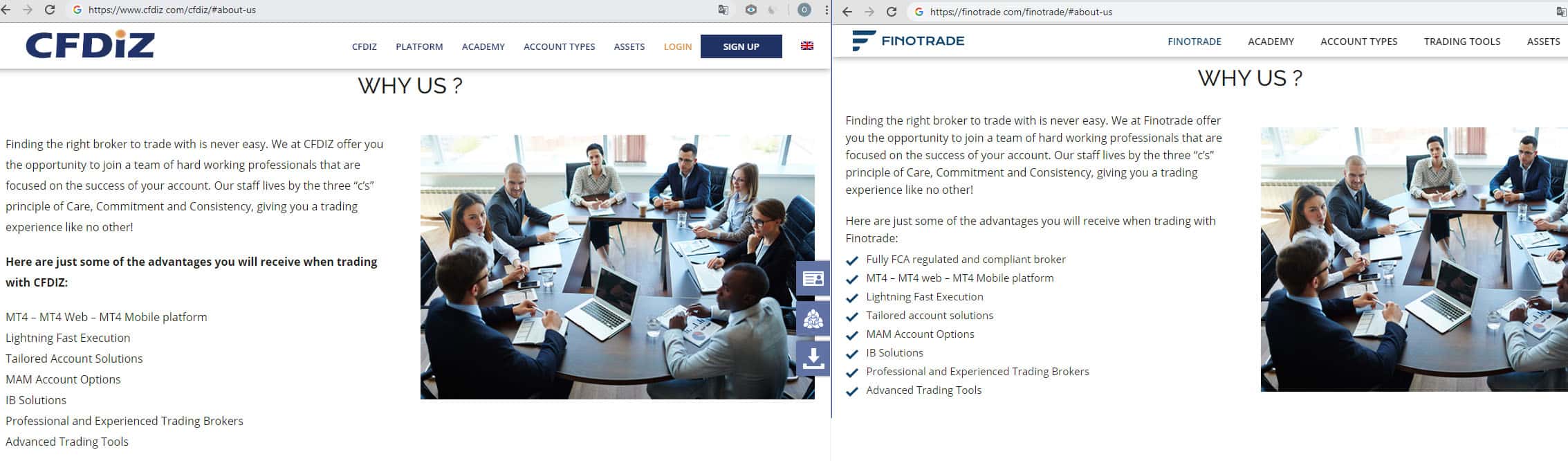 Идентичность мошеннических проектов CFDIZ и ФиноТрейд
