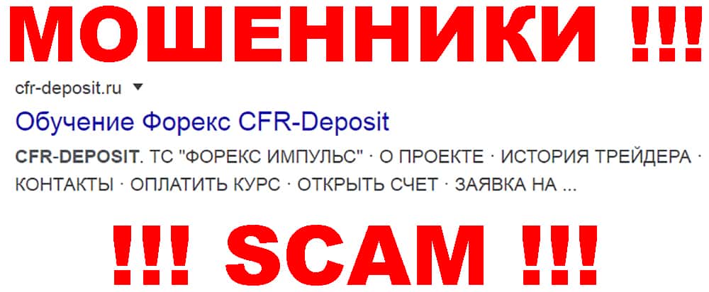 ЦФР Депозит - очередные мошенники сети интернет, которые занимаются наглым разводом наивных пользователей сети интернет под довольно банальным предлогом обучения торговли форекс, в ходе которых жулики CFR-Deposit оперативно кидают клиентуру. В связи с этим иметь дело и сотрудничать с аферистами ЦФР Депозит определенно не рекомендуем !!!